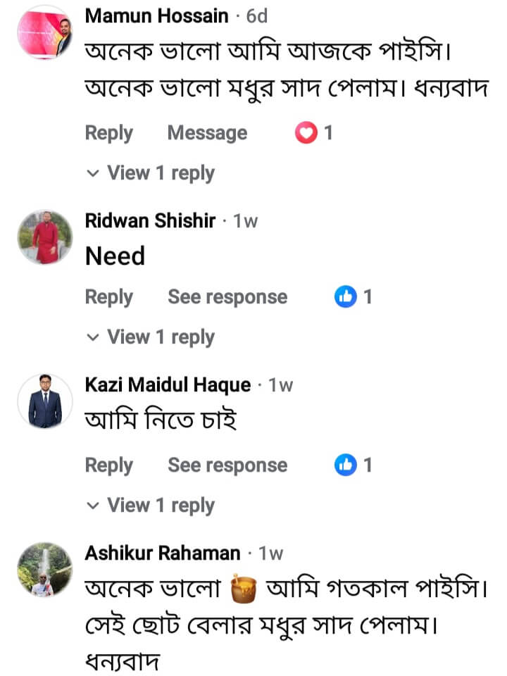 ✒️বাংলাদেশে মৌমাছি যে সকল ফুল থেকে বেশি মধু সংগ্রহ করে তার প্রায় সবকটিউ পাওয়া যায় এই মধুতে। তাই এটি সেরা।